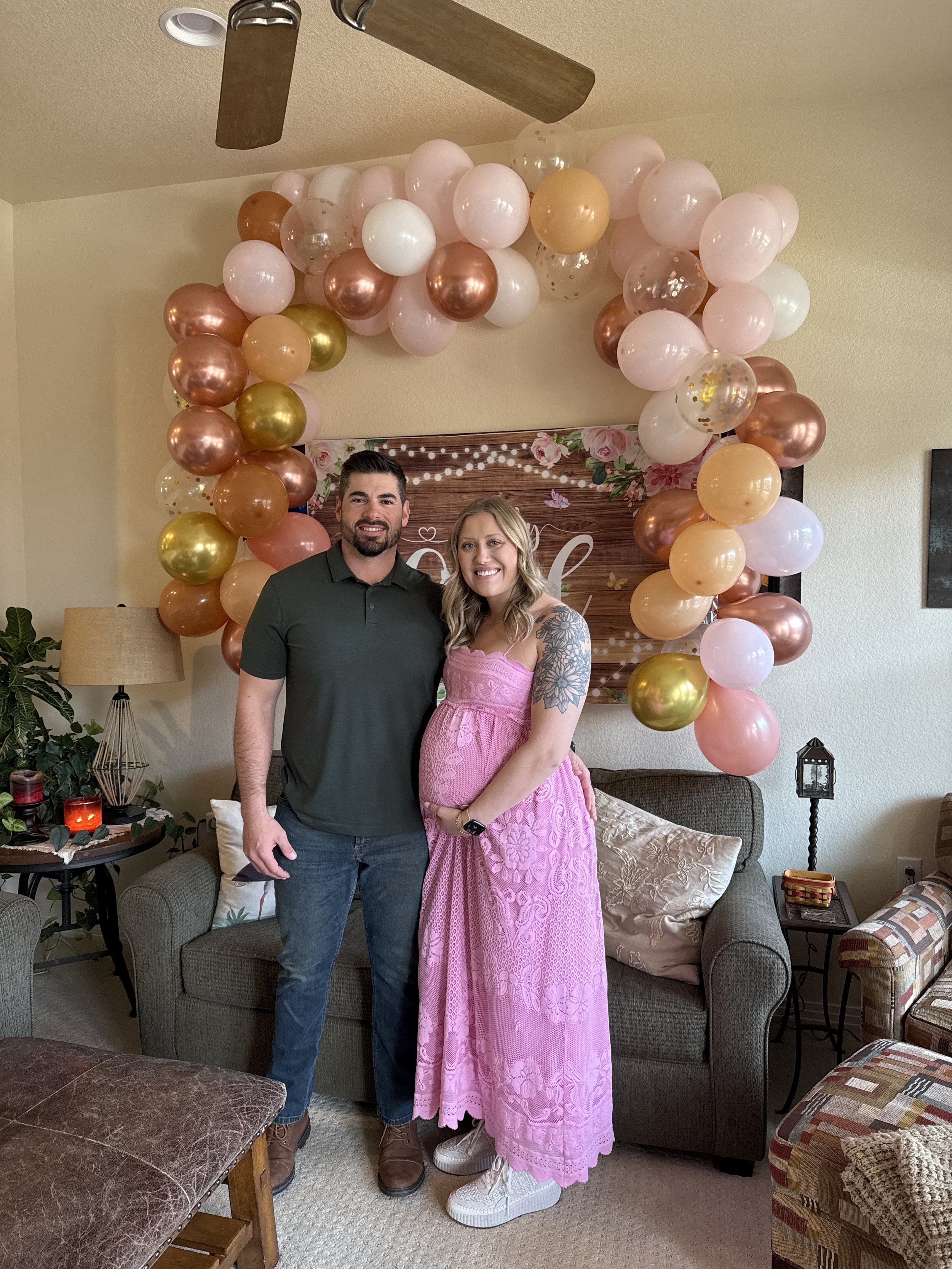 On our four-year anniversary, we found out we were pregnant, and just a few weeks later, Geoff proposed. Only one of those things was planned. In April 2025, we welcomed our baby girl, Giuliana—since we didn’t have a flower girl, we figured we’d go ahead and make one.